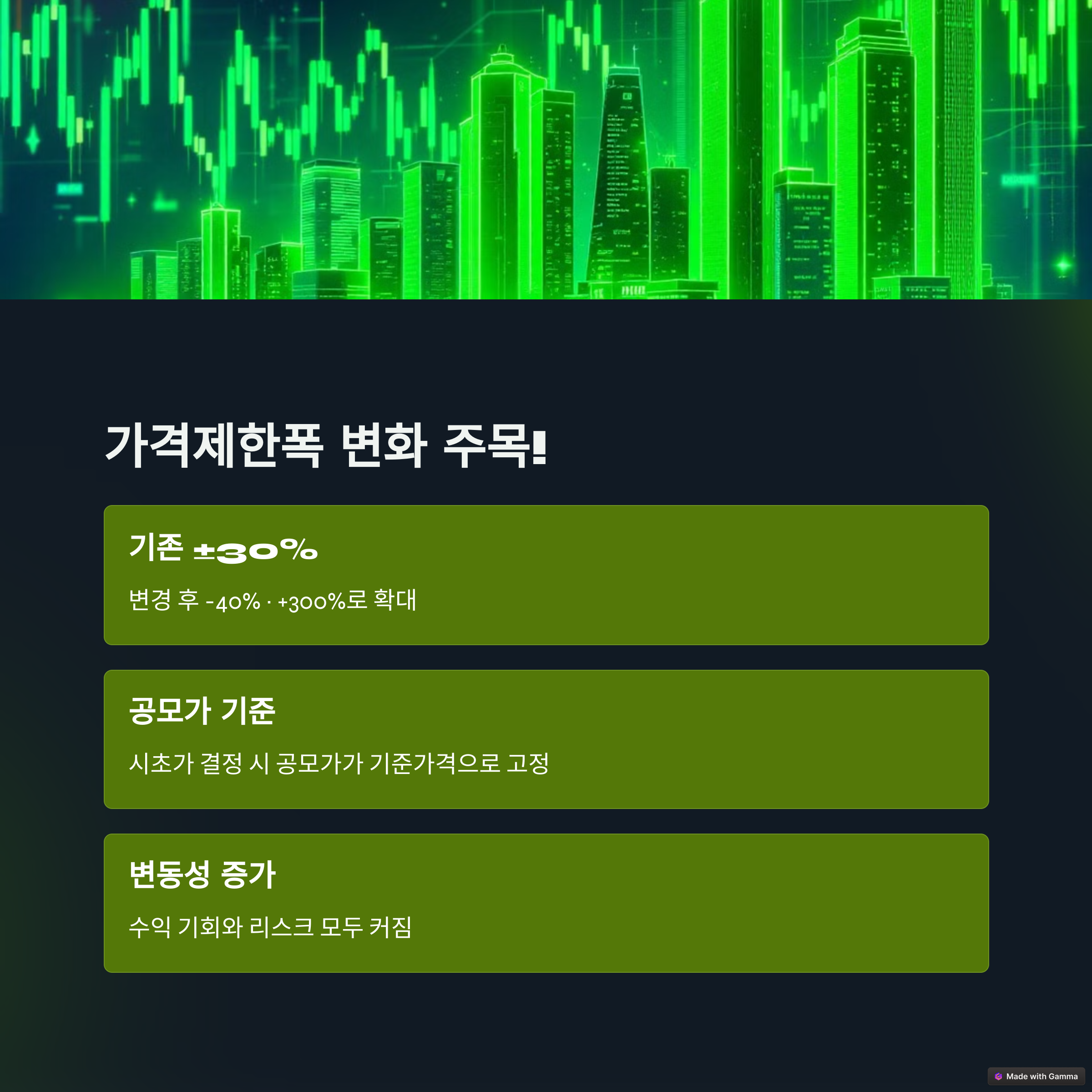 - 시초가 결정 방식 변화: 공모가가 기준가격으로 고정
