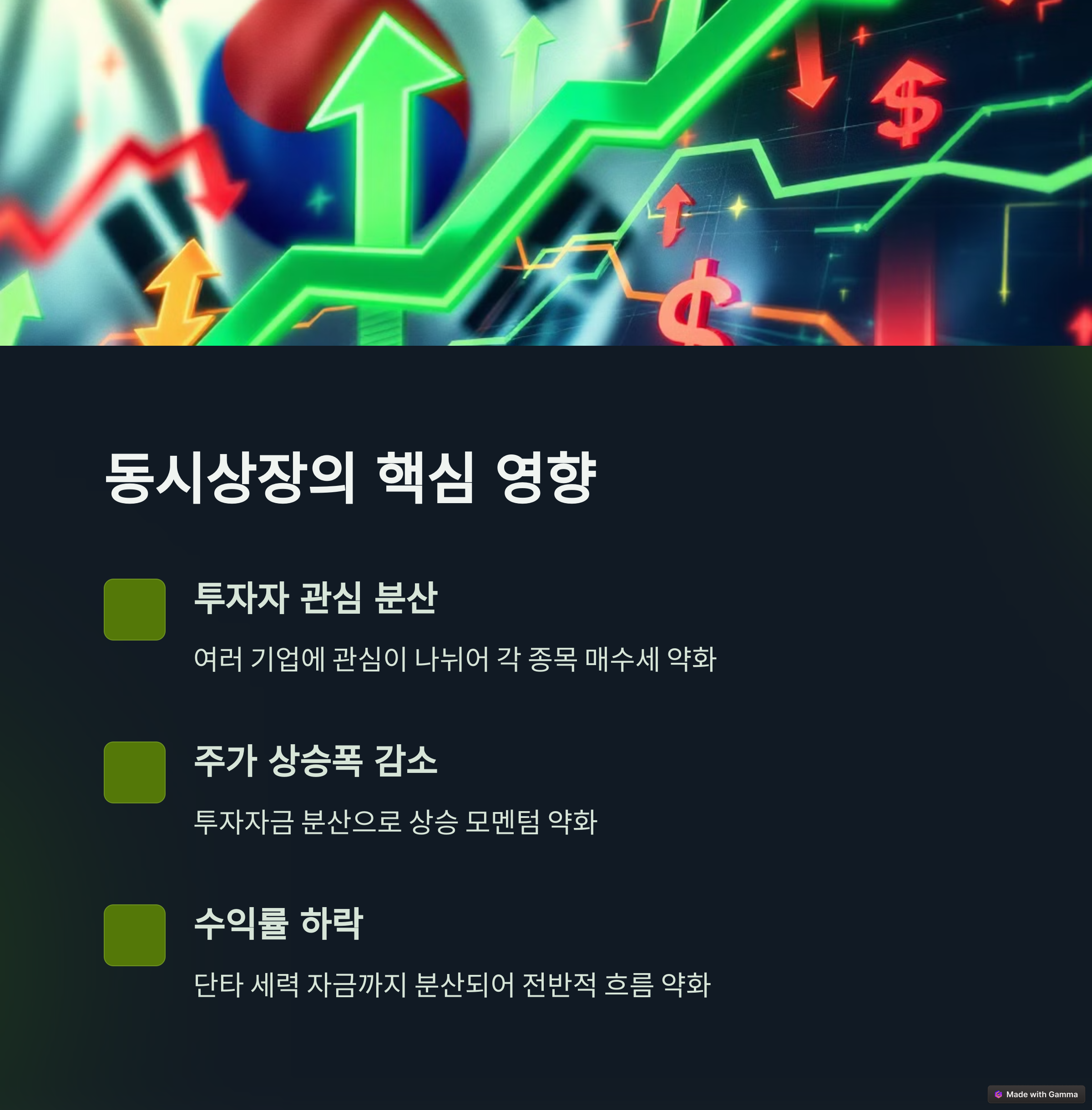 공모주 동시상장은 같은 날 두 개 이상의 신규 기업이 상장하는 상황을 말해요. 이게 왜 중요하냐고요? 상장일은 사실상 투자자들한테 '축제의 날'이거든요. 근데 이 축제에 주인공이 여러 명이라면... 당연히 관심이 나눠지죠. 전문가들 말로는 이게 투자자들의 매수세를 분산시키고, 그 결과로 주가 상승 폭이 줄어들 수 있다고 하더라고요. 수익률에까지 직격탄이 될 수도 있다니, 정말 심각한 문제죠.