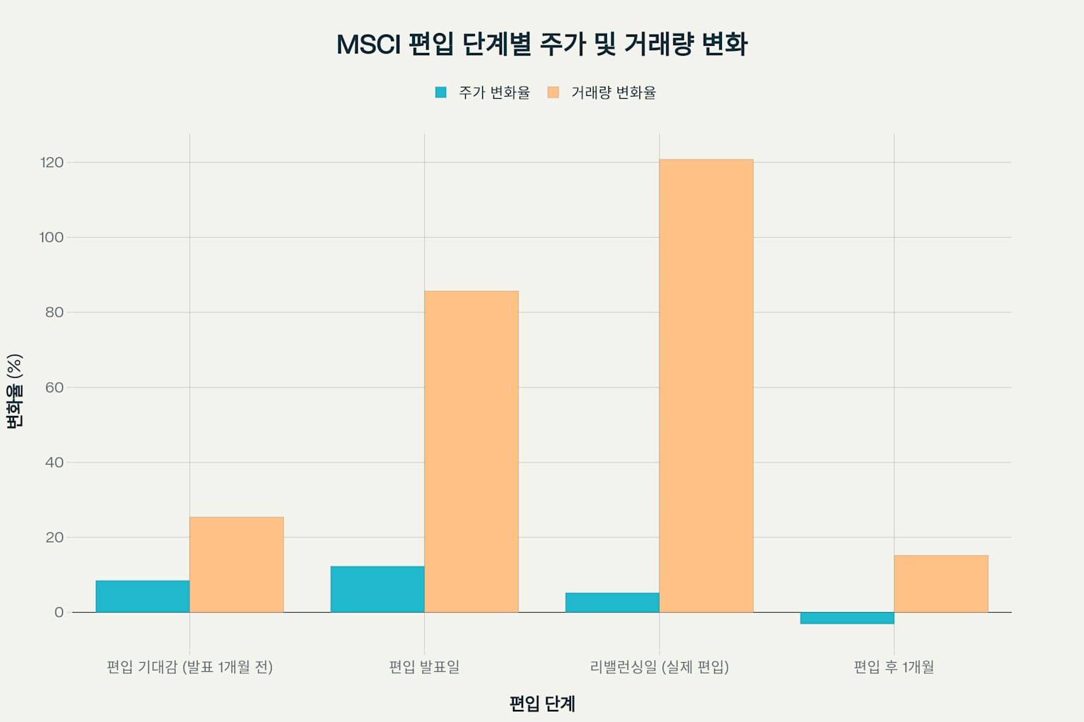 "MSCI 편입 발표 직후 주가는 급등합니다"