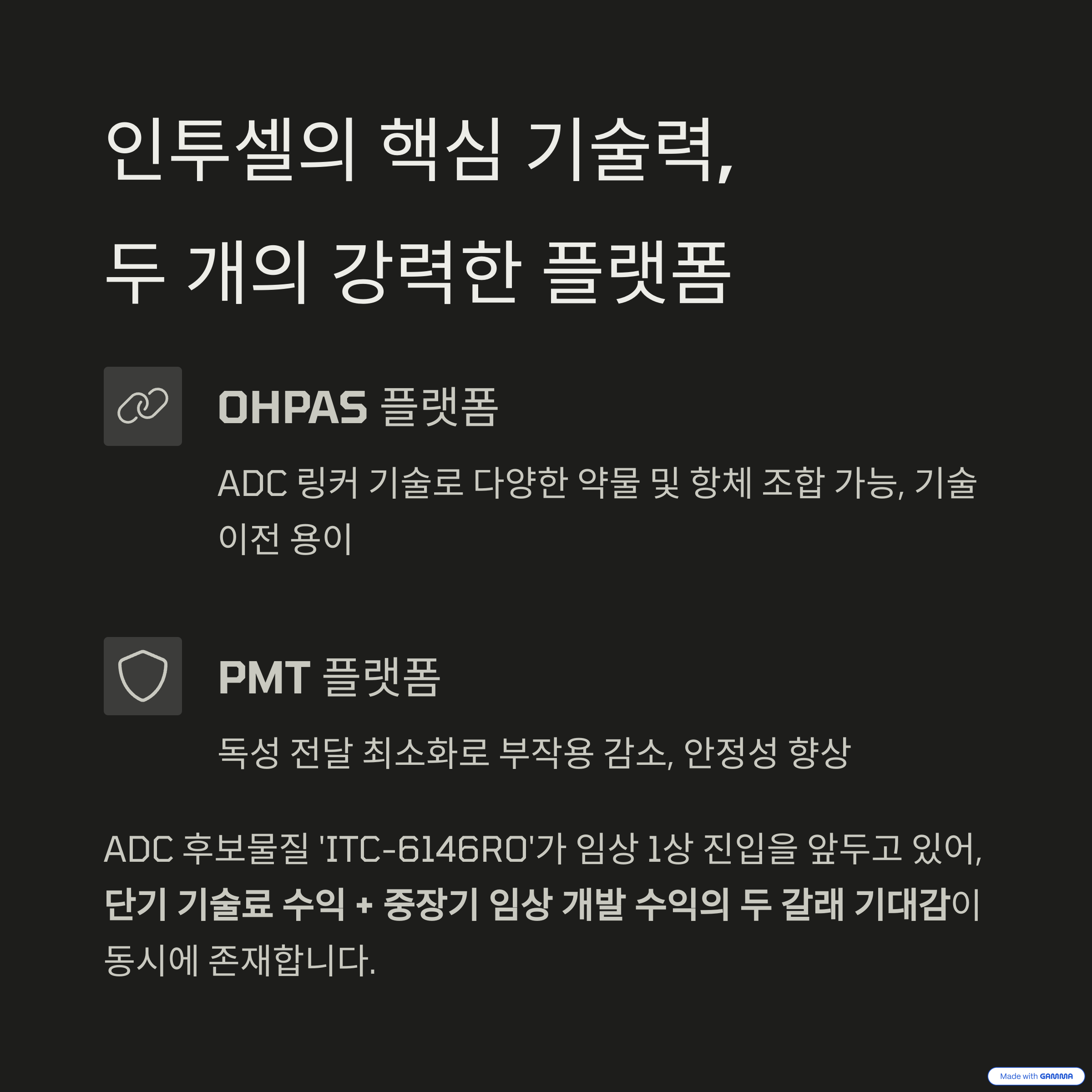 기술력 요약 – 인투셀의 두 축, OHPAS & PMT 플랫폼