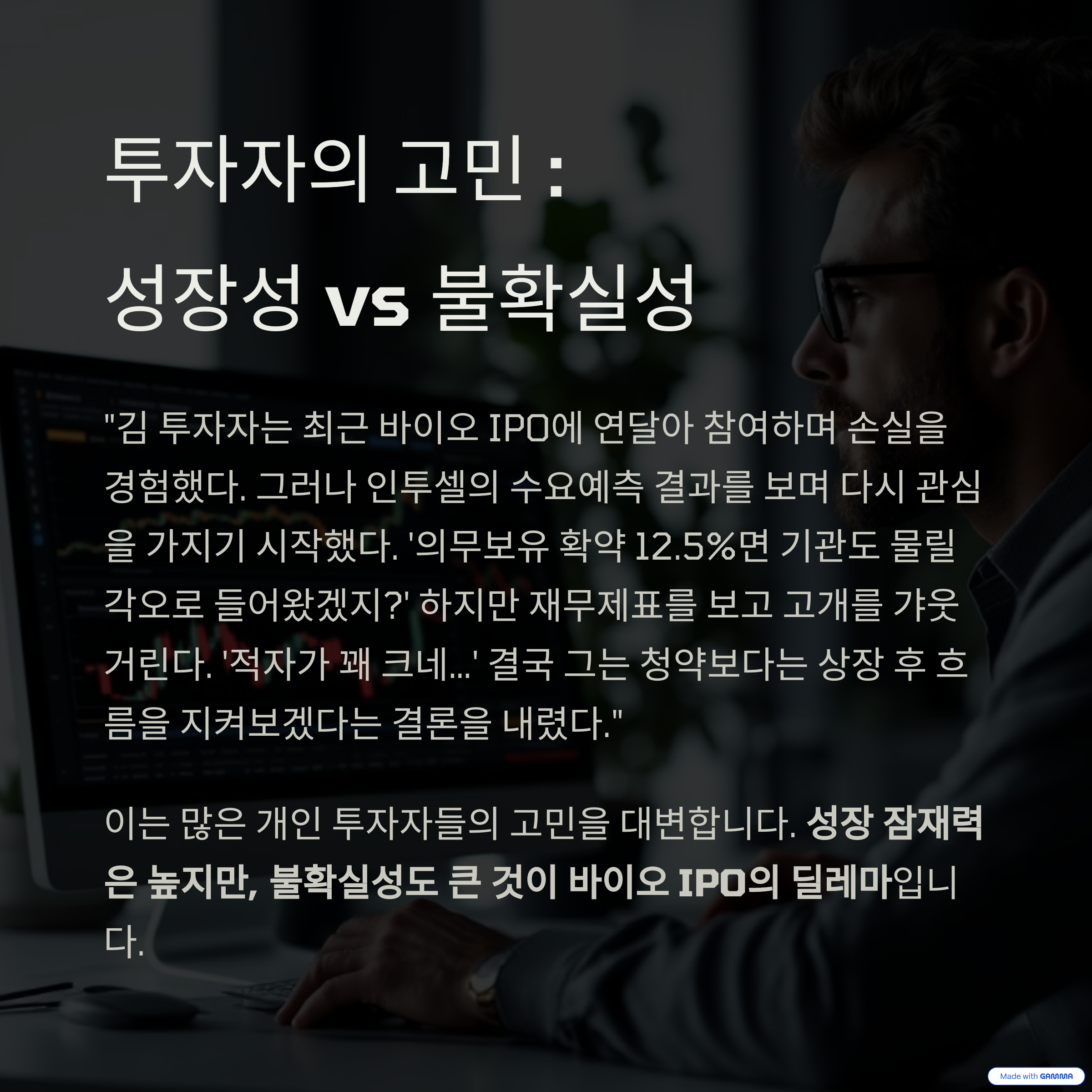 "김 투자자는 최근 바이오 IPO에 연달아 참여하며 손실을 경험했다.