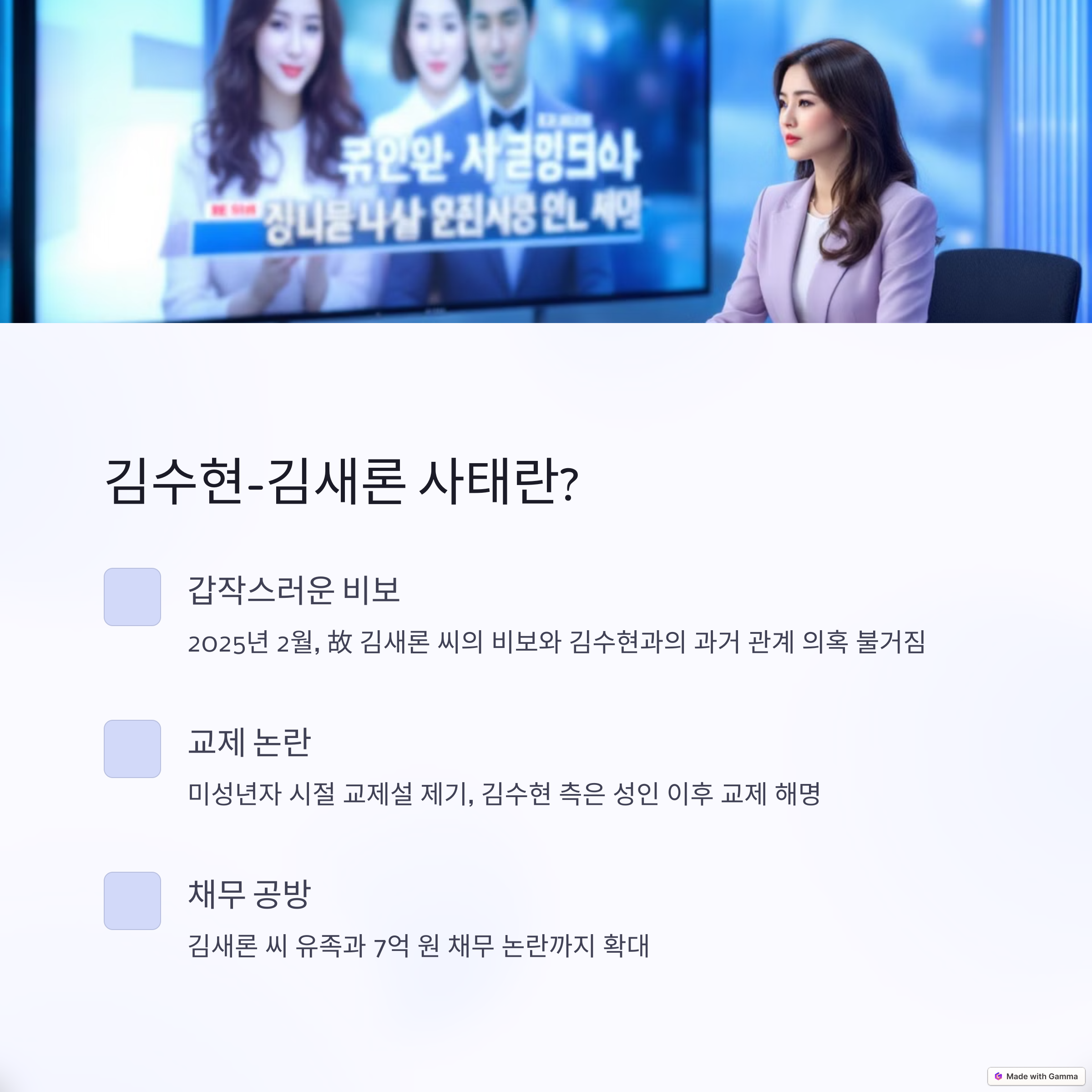 2025년 2월, 故 김새론 씨의 갑작스러운 비보와 함께 김수현 씨와의 과거 관계 의혹이 불거지면서 한국 연예계가 발칵 뒤집혔죠. 유튜브 채널 ‘가로세로연구소’에서 미성년자 시절 교제설을 제기했고, 이에 김수현 측은 성인 이후 교제했다고 해명했습니다. 게다가 김새론 씨 유족과 7억 원 채무 공방까지 불거져 파장이 커지고 있어요. 단순한 연예인 이슈가 아니라 엔터 산업과 금융 시장에까지 영향을 주고 있는 상황이랍니다.
