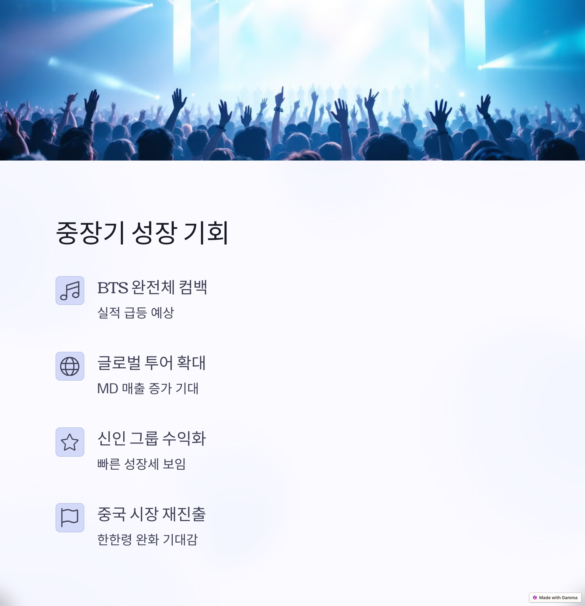 - 글로벌 투어 확대와 MD 매출 증가