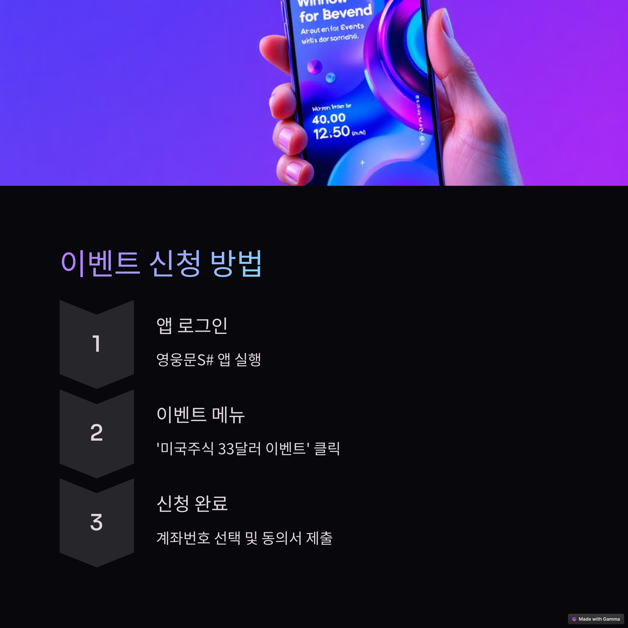 - '이벤트' 메뉴 선택 후 '미국주식 33달러 이벤트' 클릭