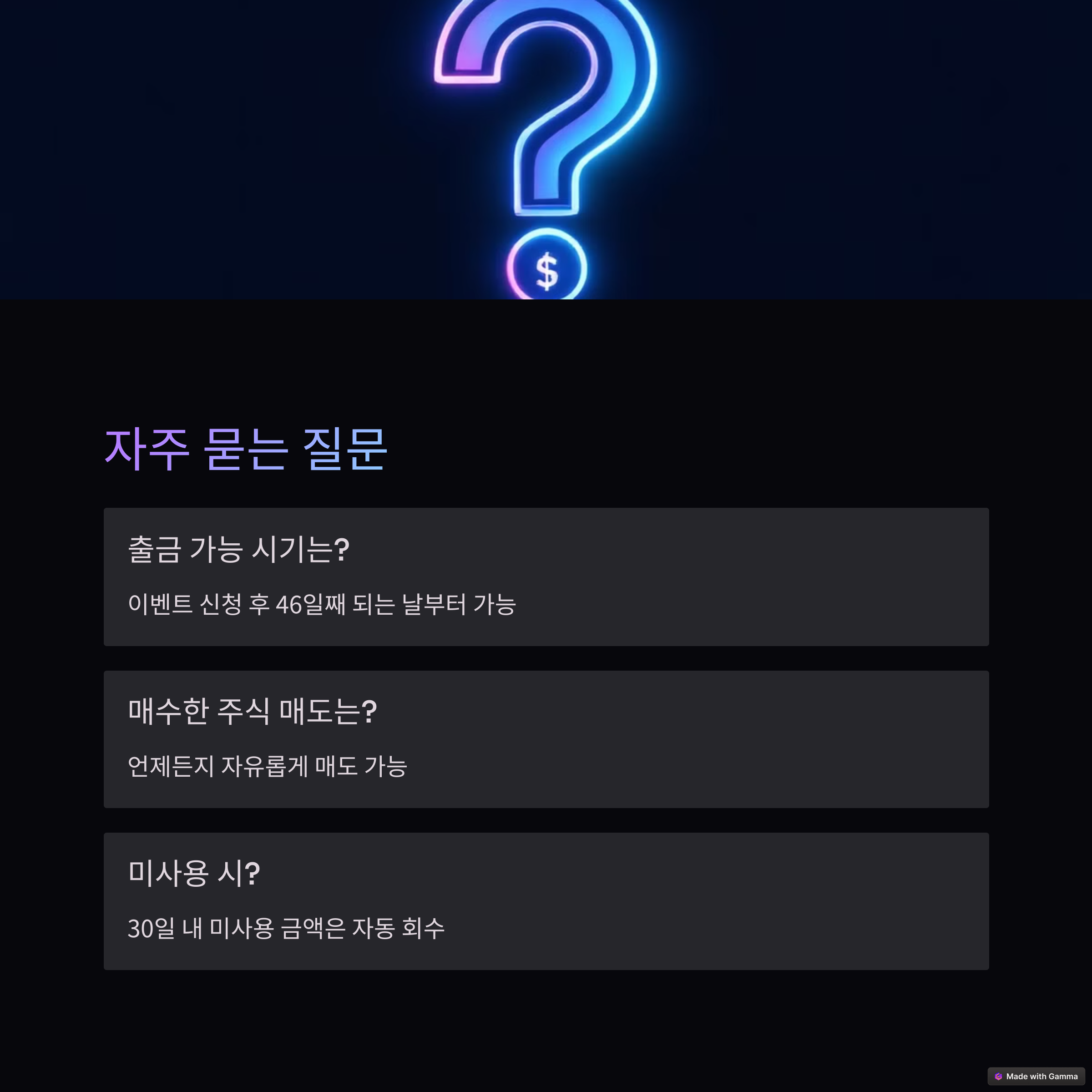| 출금 가능일 | 이벤트 신청 후 46일째 되는 날 |
