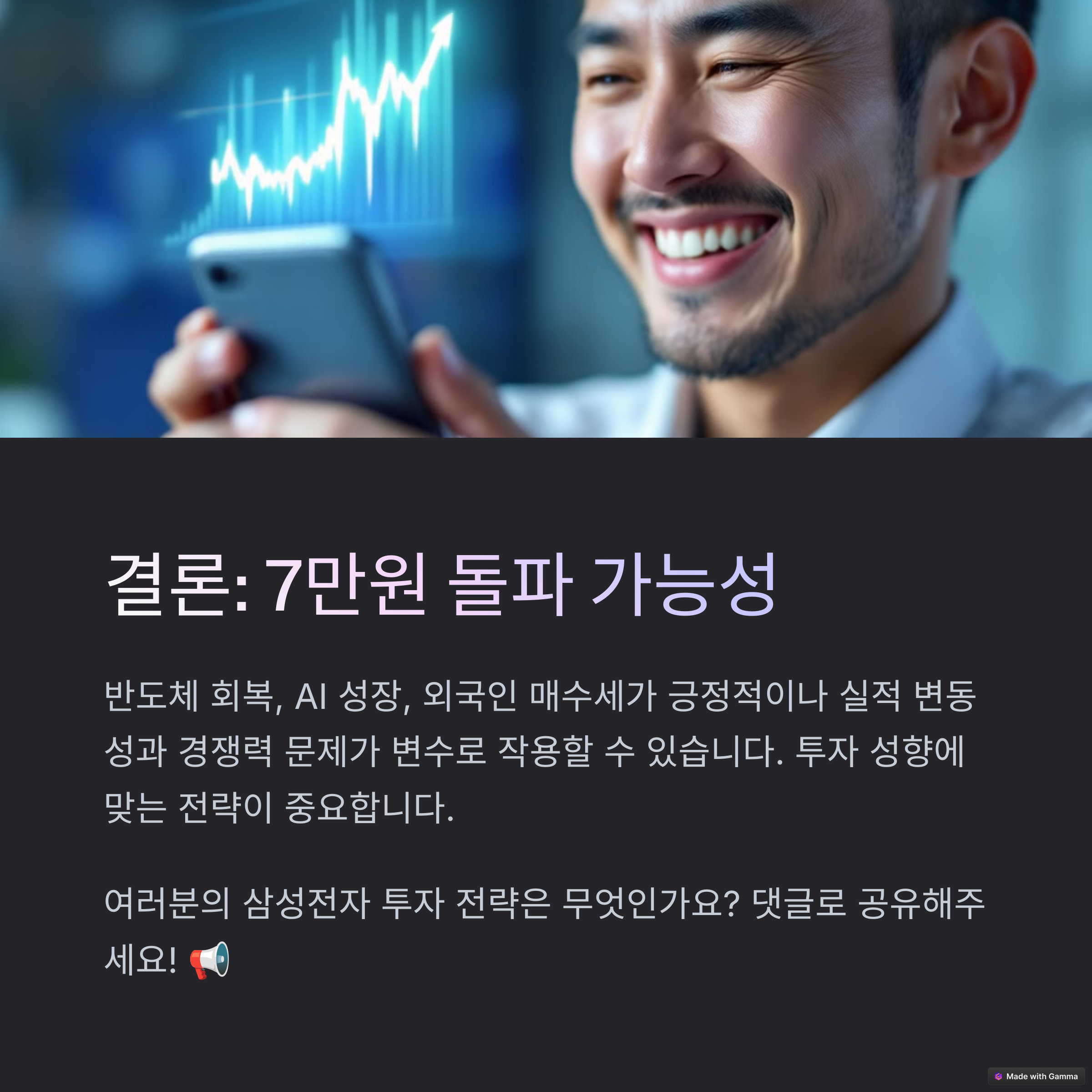 삼성전자 주가 7만원 돌파, 과연 가능할까요? 여러분의 생각과 투자 전략을 댓글로 공유해 주세요! 📢💬