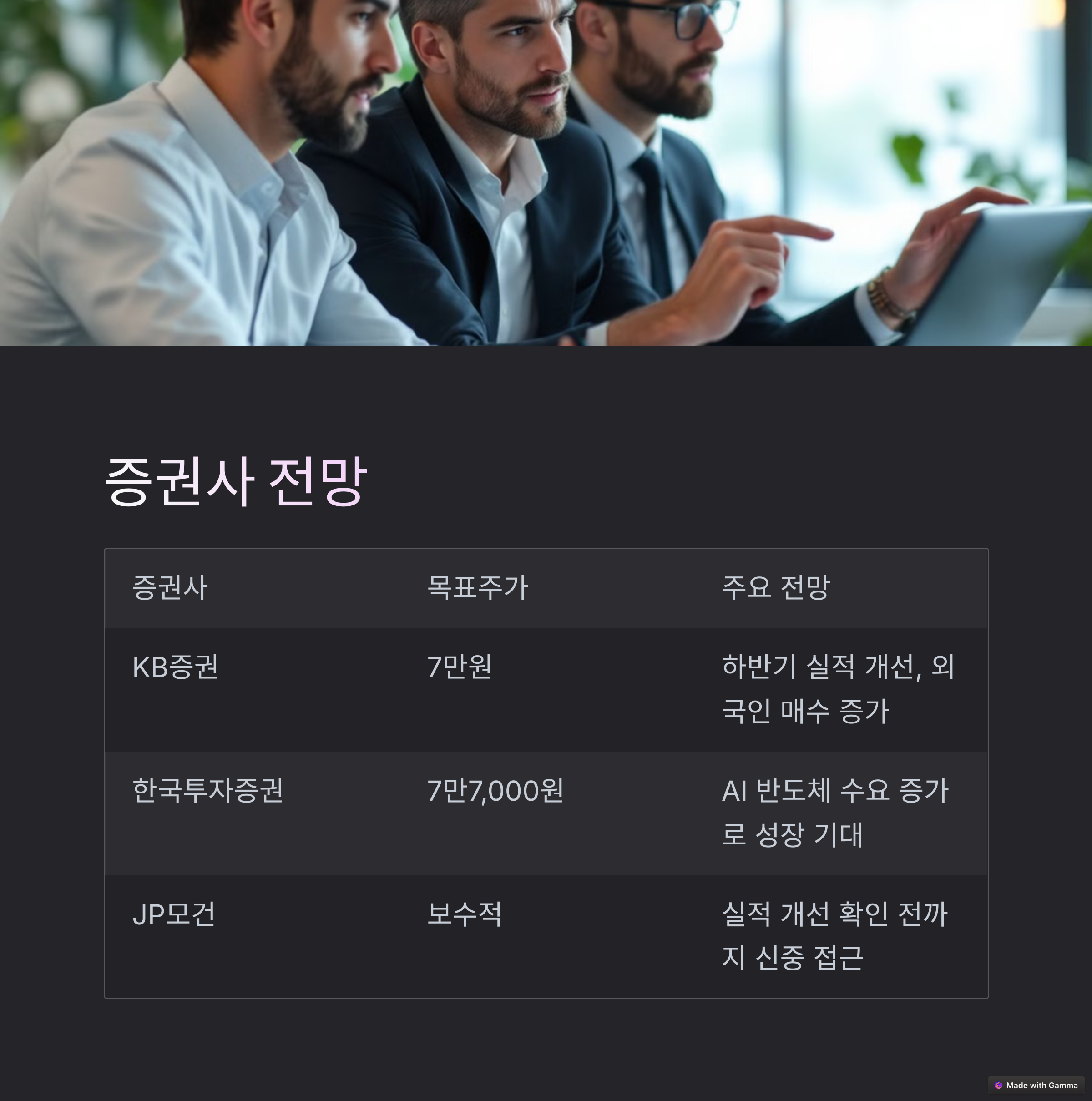 | 한국투자증권 | 7만7,000원 | AI 반도체 수요 증가로 인한 성장 기대 |