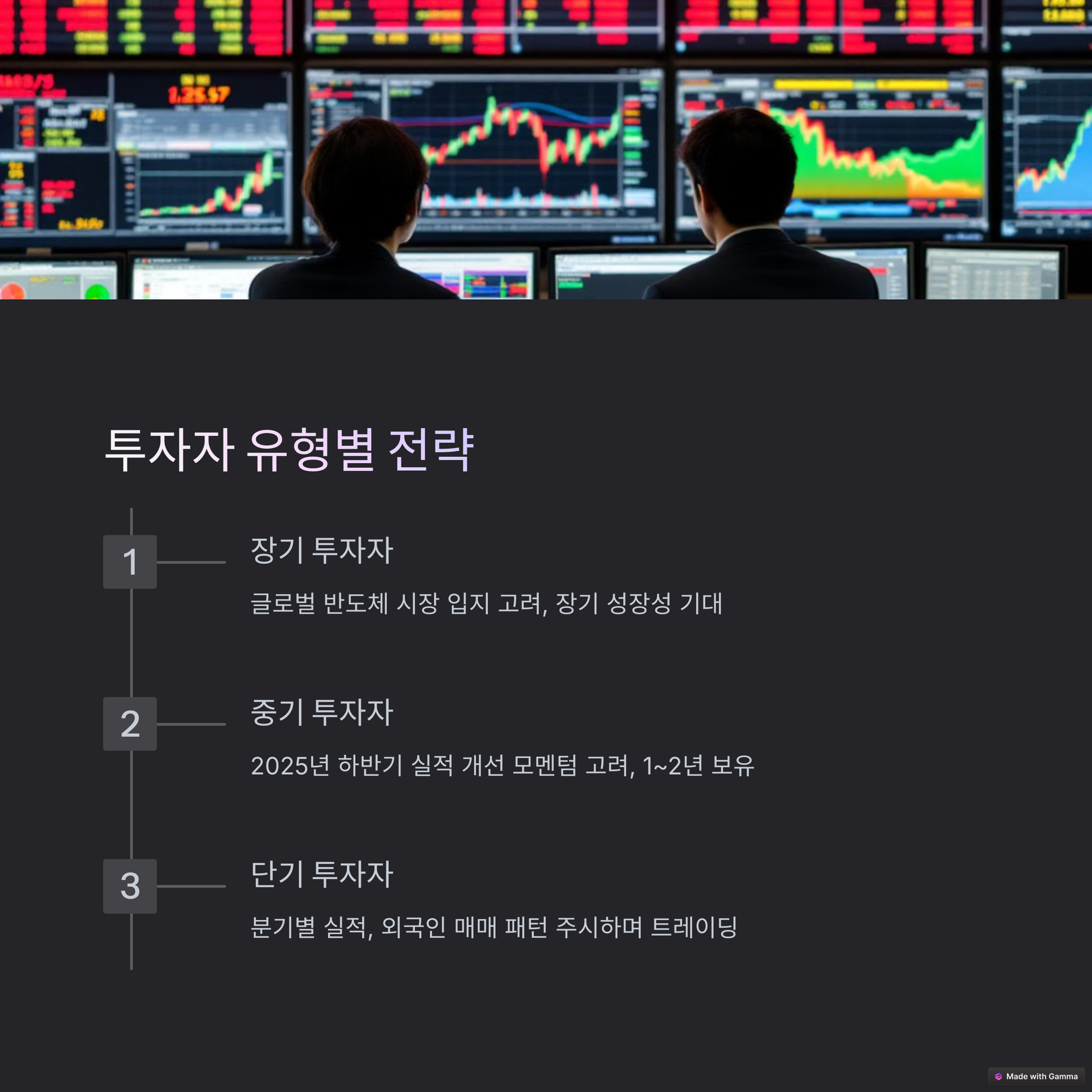 삼성전자 투자 전략은 투자자의 성향과 시간적 관점에 따라 다르게 설정해야 합니다. 단기, 중기, 장기 투자자별로 적절한 접근 방식을 살펴보겠습니다.