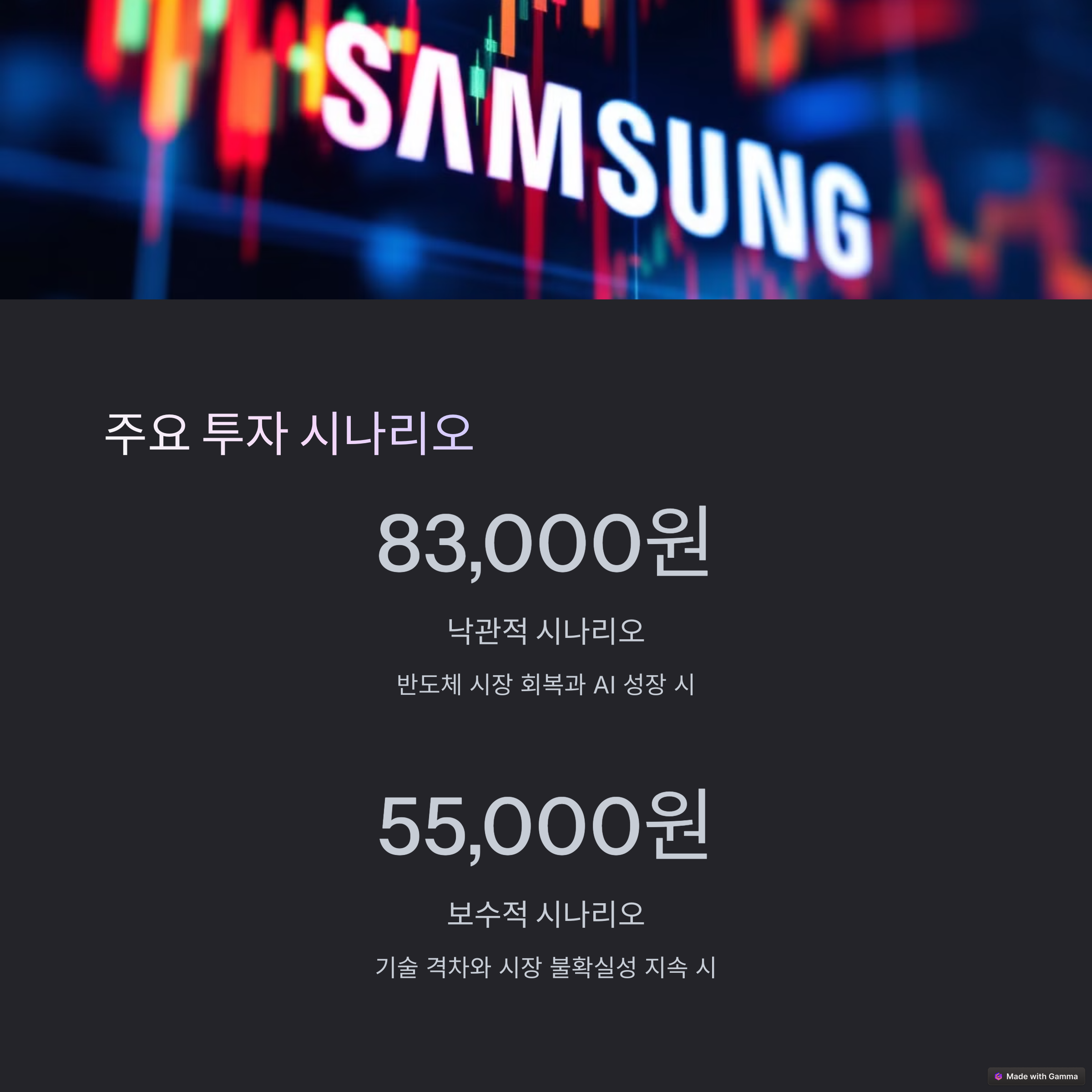 - 장기 투자자: 삼성전자의 글로벌 반도체 시장 내 입지를 고려해 장기적 성장성을 기대하며 보유 전략 유지