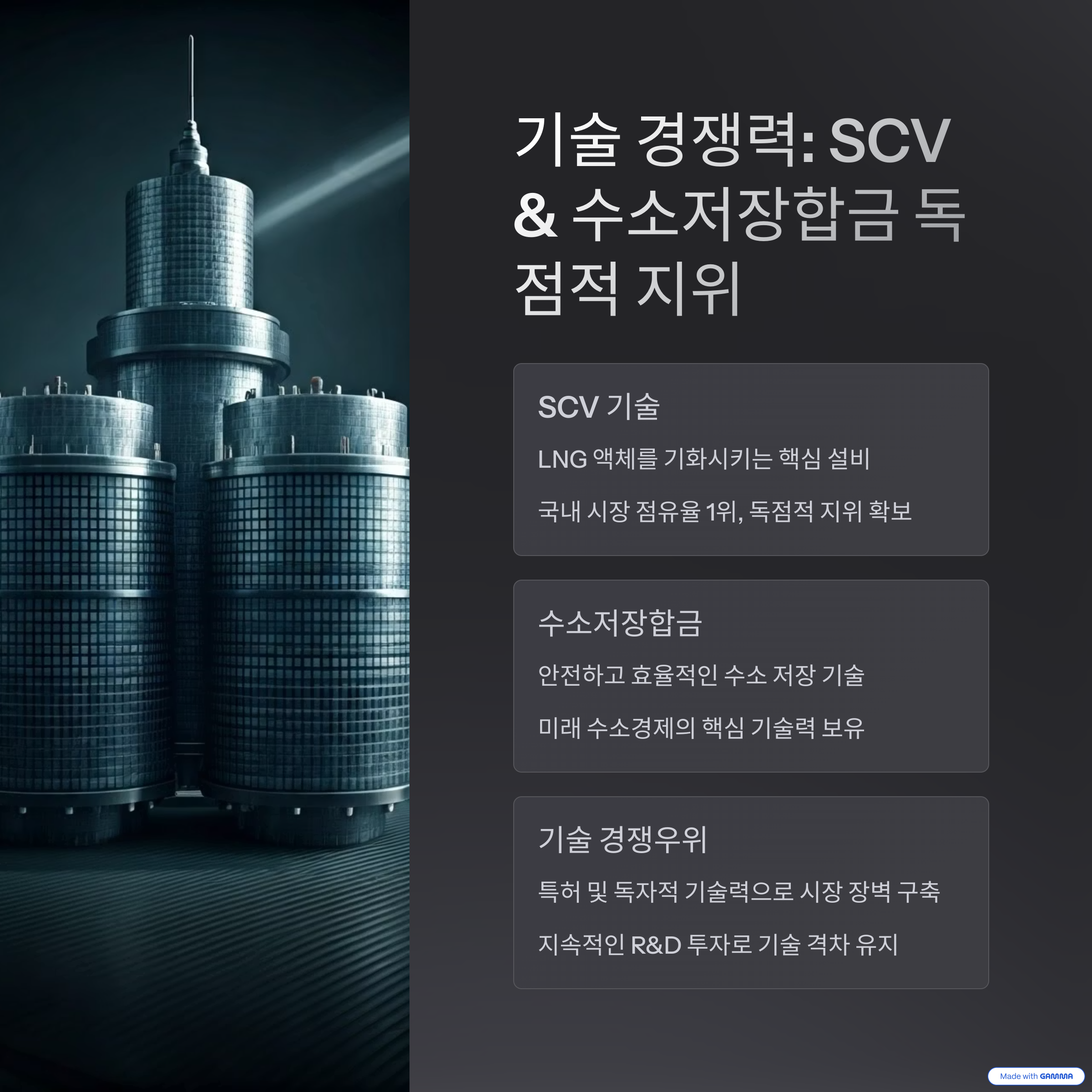 특히 수소저장합금과 LNG 기화기 분야에서 독보적 경쟁력을 보유하고 있습니다.