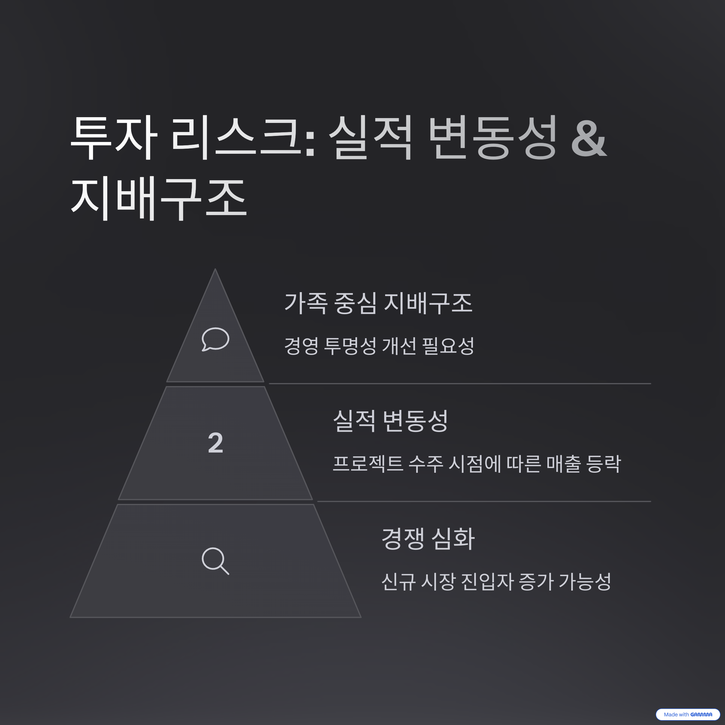 주요 리스크 - 단기 실적 변동성과 가족 지배구조의 한계