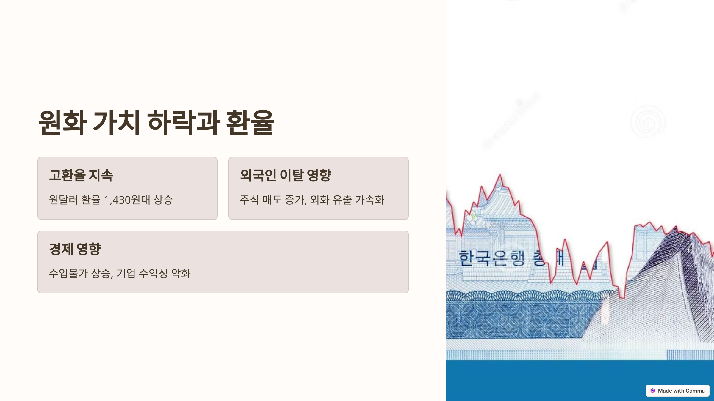 - 원화 약세 및 환율 상승 압력 증가