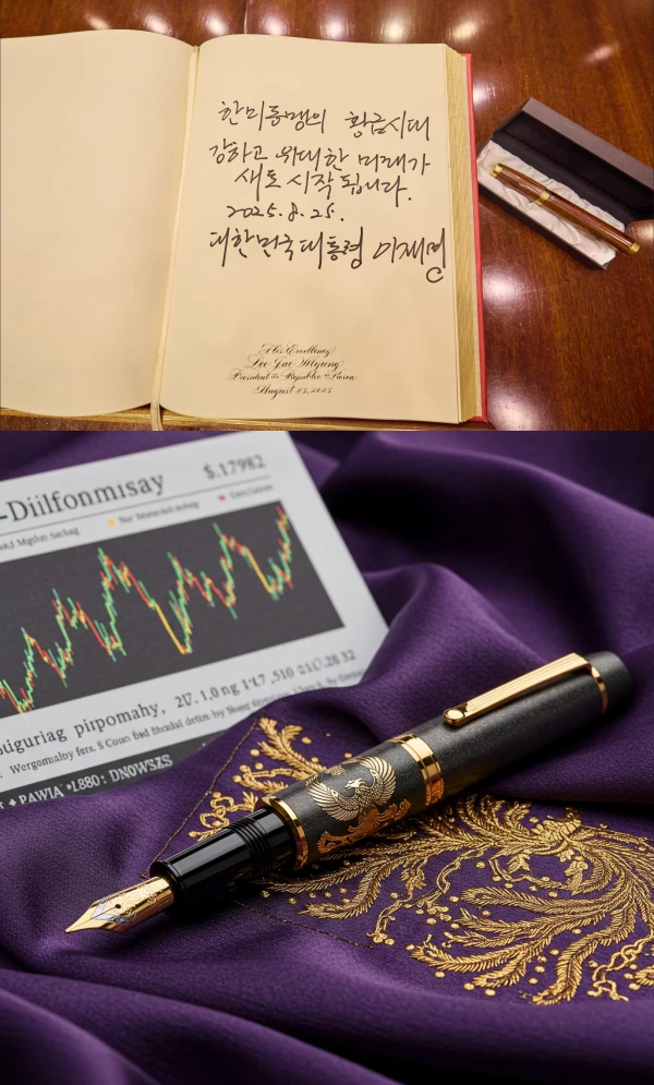 단순한 필기구가 아니었습니다. 이재명 대통령이 2025년 8월 26일 백악관에서 서명할 때 사용한 바로 그 펜인데요. 이 펜은 트럼프 전 대통령에게 선물로 전해지며 큰 의미를 갖게 되었죠.