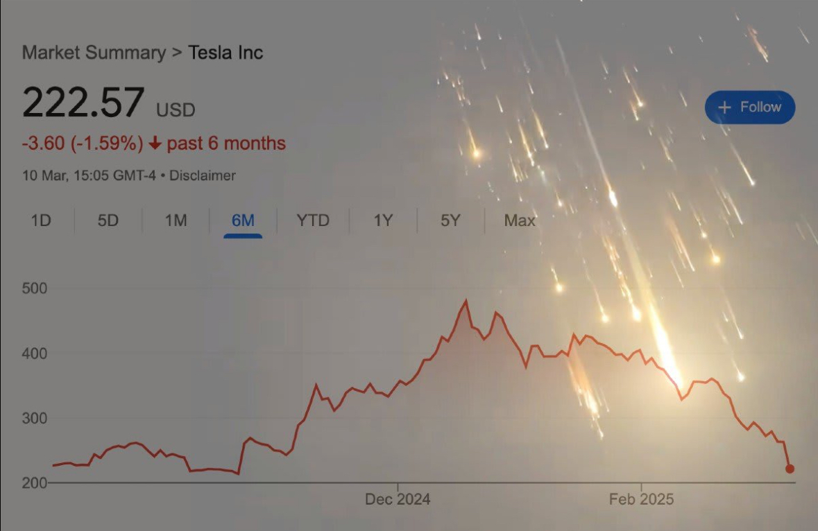 그 결과 테슬라 주가는 폭락했습니다.