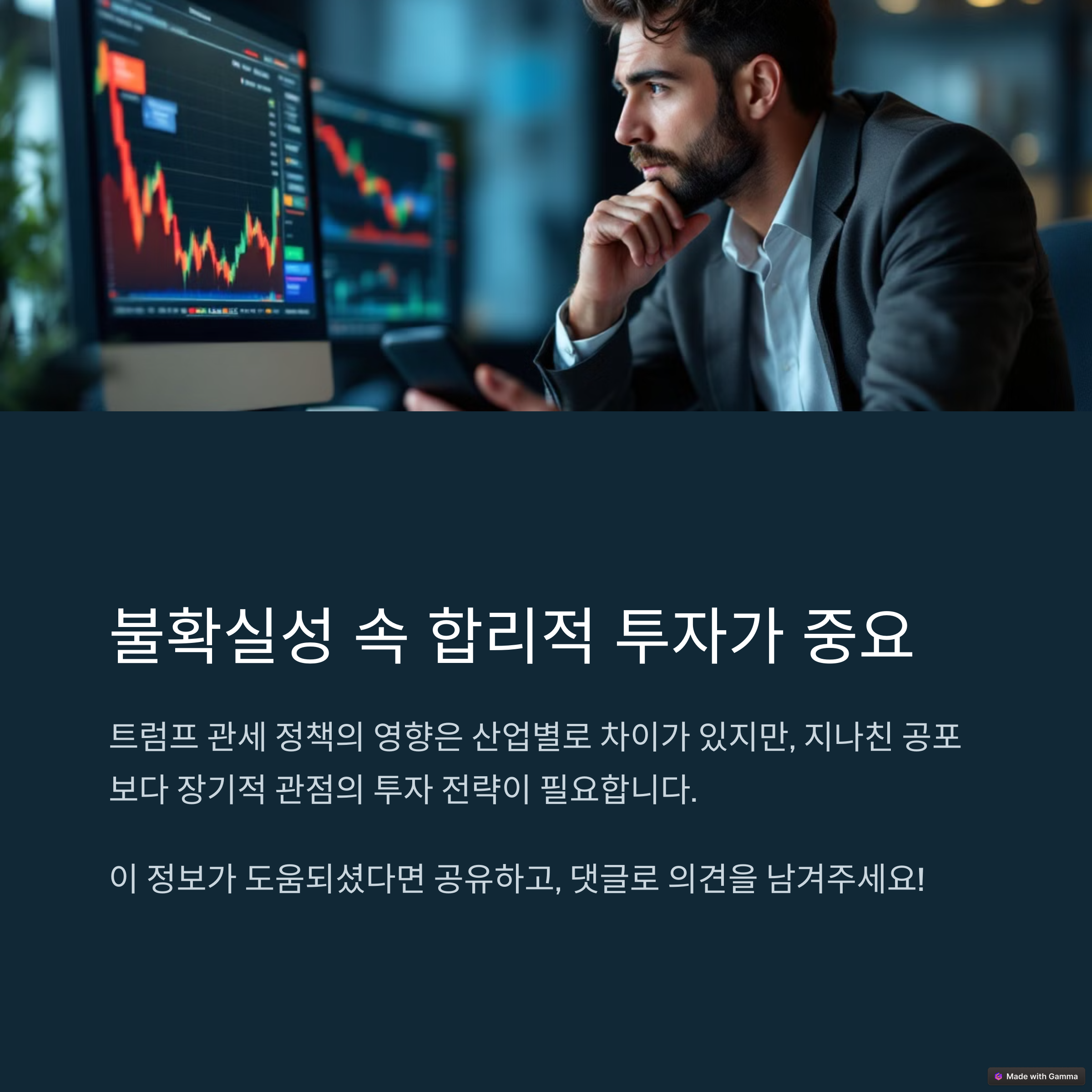 장기적인 투자 관점에서 접근하며, 관세 정책 영향을 상대적으로 덜 받는 업종에 대한 관심을 높이는 것이 중요합니다.