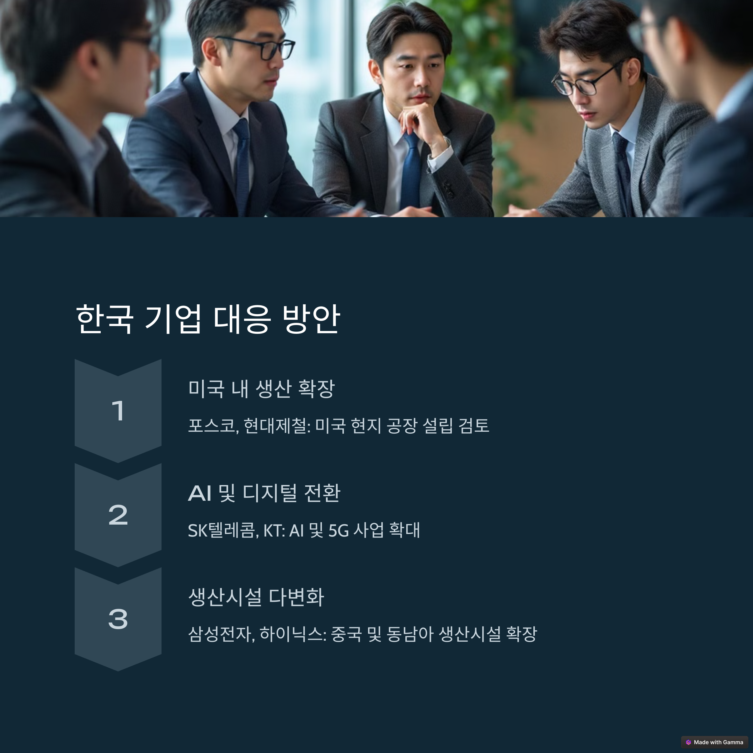 포스코와 현대제철은 미국 내 생산시설 확대를 검토하고 있으며, SK텔레콤과 KT는 AI 및 5G 사업 확장으로 수익 다변화를 모색하고 있습니다.