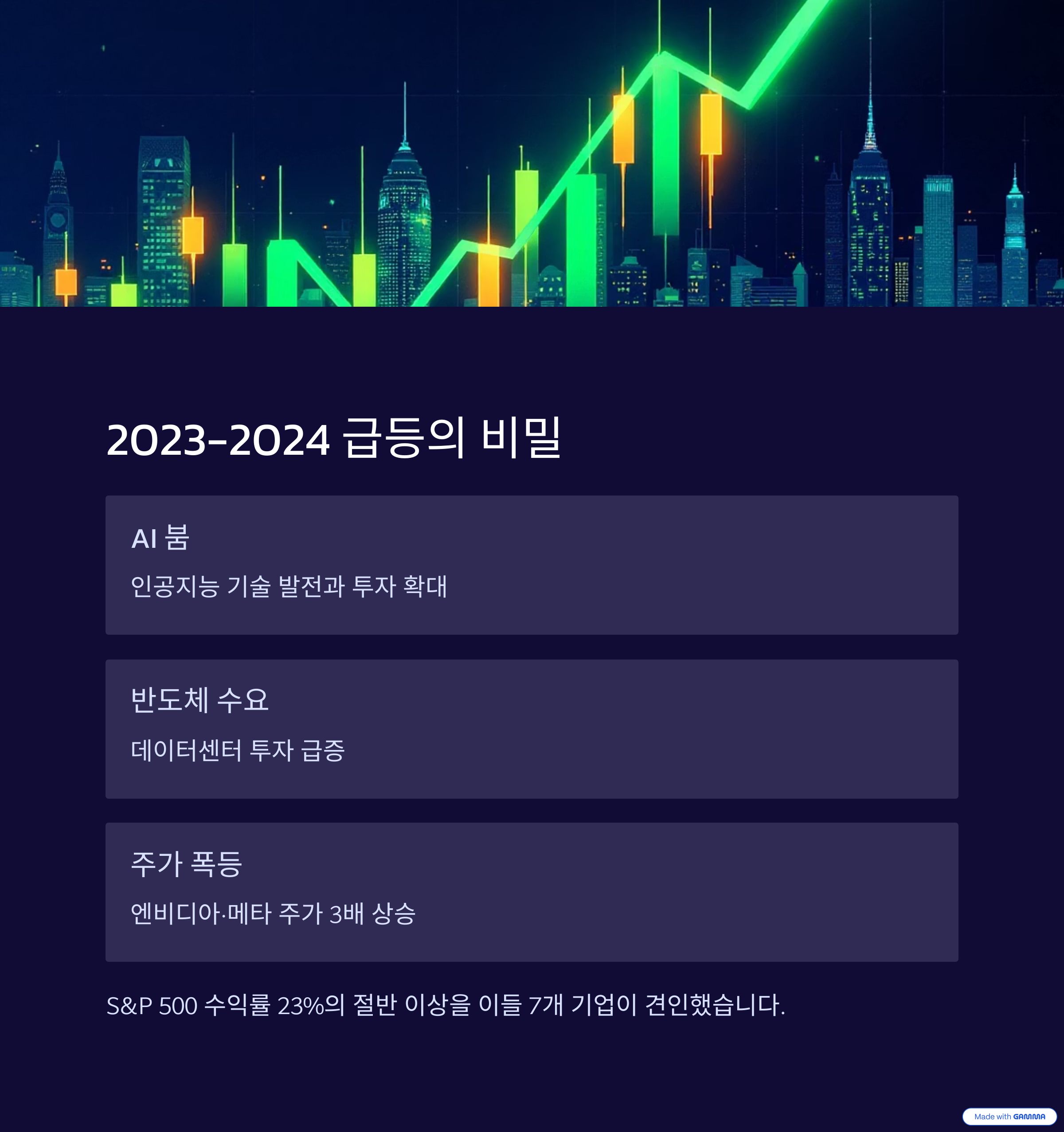 "2023년 S&P 500 수익률이 23%였던 반면, 이들 7개 기업이 없었다면 절반 수준에 불과했다"는 분석도 있습니다.