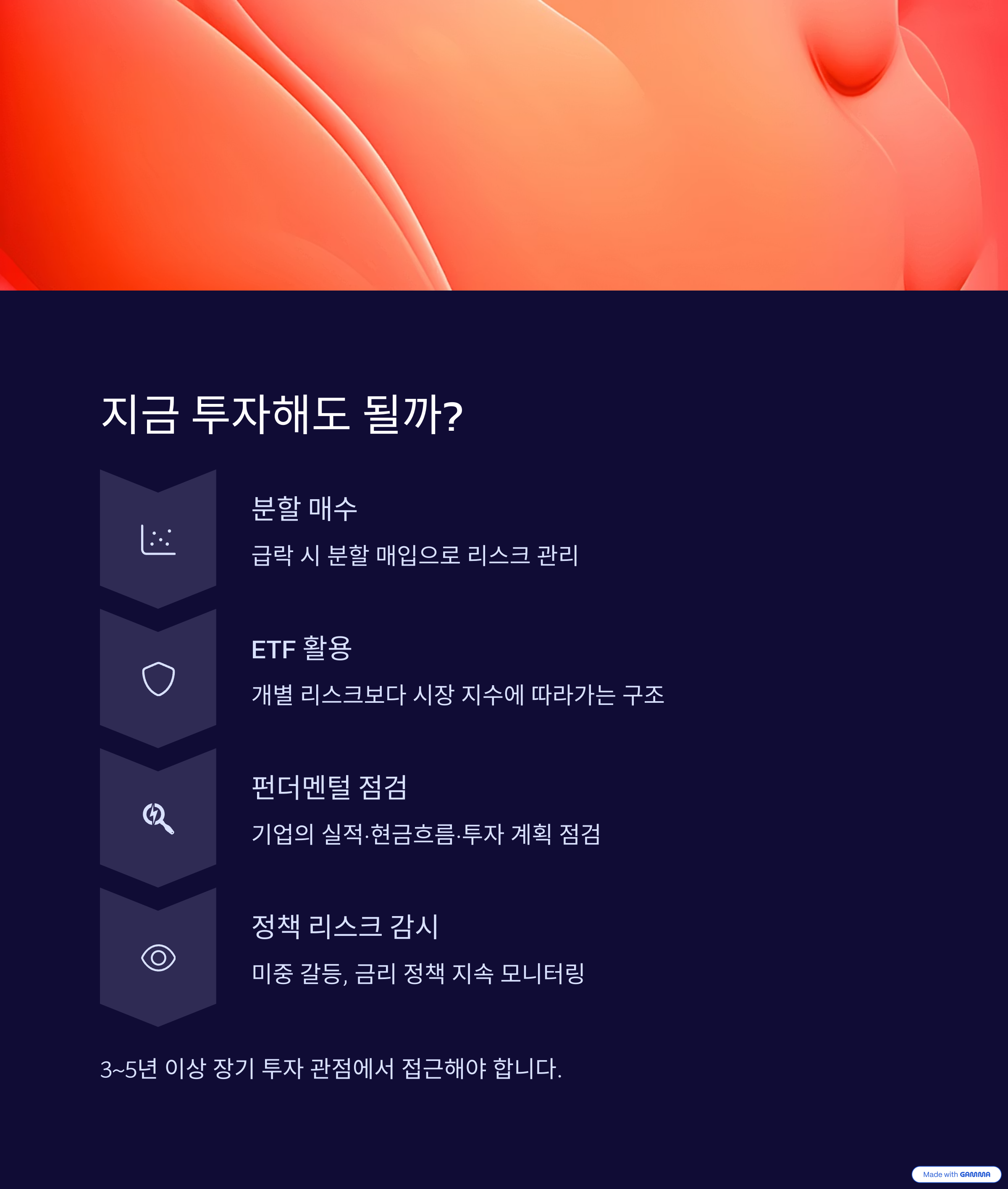 현시점에서 투자 여부를 판단할 때 고려할 전략은 다음과 같습니다.