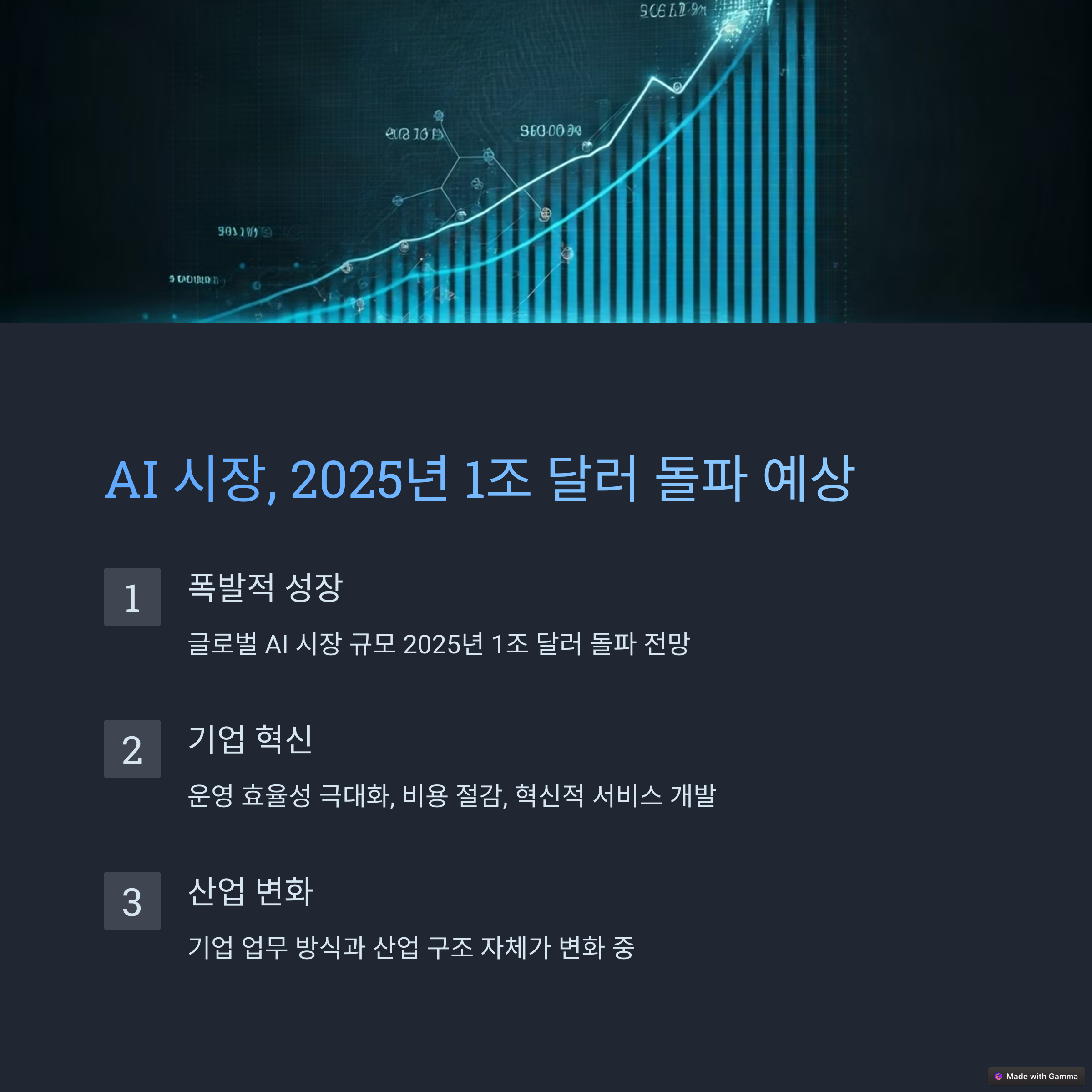 AI 기술의 발전 속도는 그야말로 놀라울 정도입니다. 머신러닝, 딥러닝, 자연어 처리(NLP), 컴퓨터 비전 등의 기술이 지속적으로 개선되면서 기업의 업무 방식과 산업 구조 자체가 변화하고 있습니다. 시장 조사 기관에 따르면 2025년까지 글로벌 AI 시장 규모는 1조 달러를 넘어설 것으로 예상됩니다. 이는 기업들이 AI를 통해 운영 효율성을 극대화하고, 비용 절감 및 혁신적인 서비스 개발에 집중하기 때문입니다.