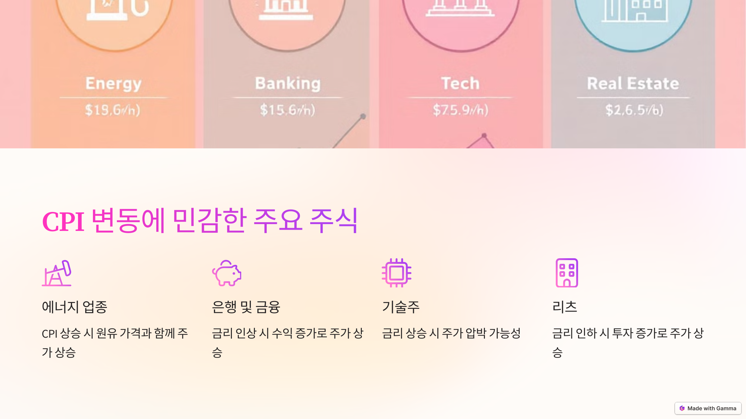 에너지, 금융, 소비재, 부동산 업종이 CPI 변동에 민감하게 반응하는 대표적인 산업입니다.