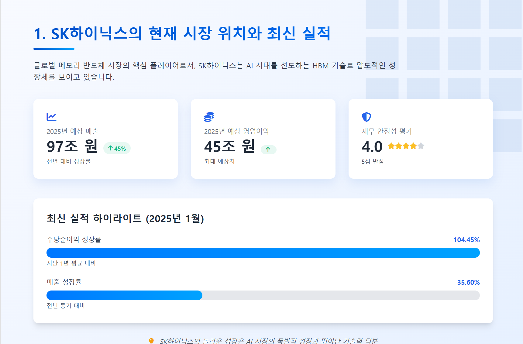 1. SK하이닉스의 현재 시장 위치와 최신 실적