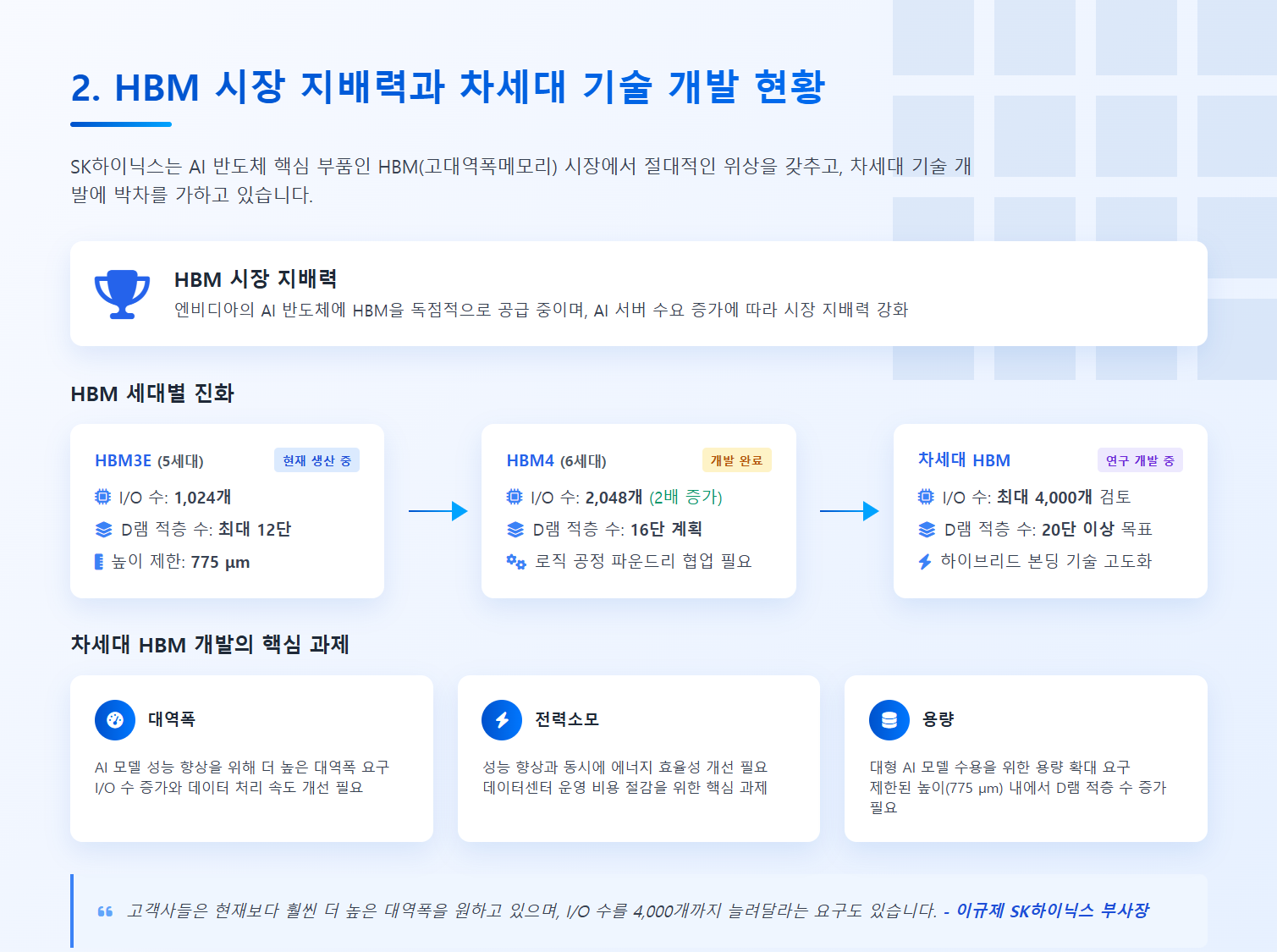 2. HBM 시장 지배력과 차세대 기술 개발 현황