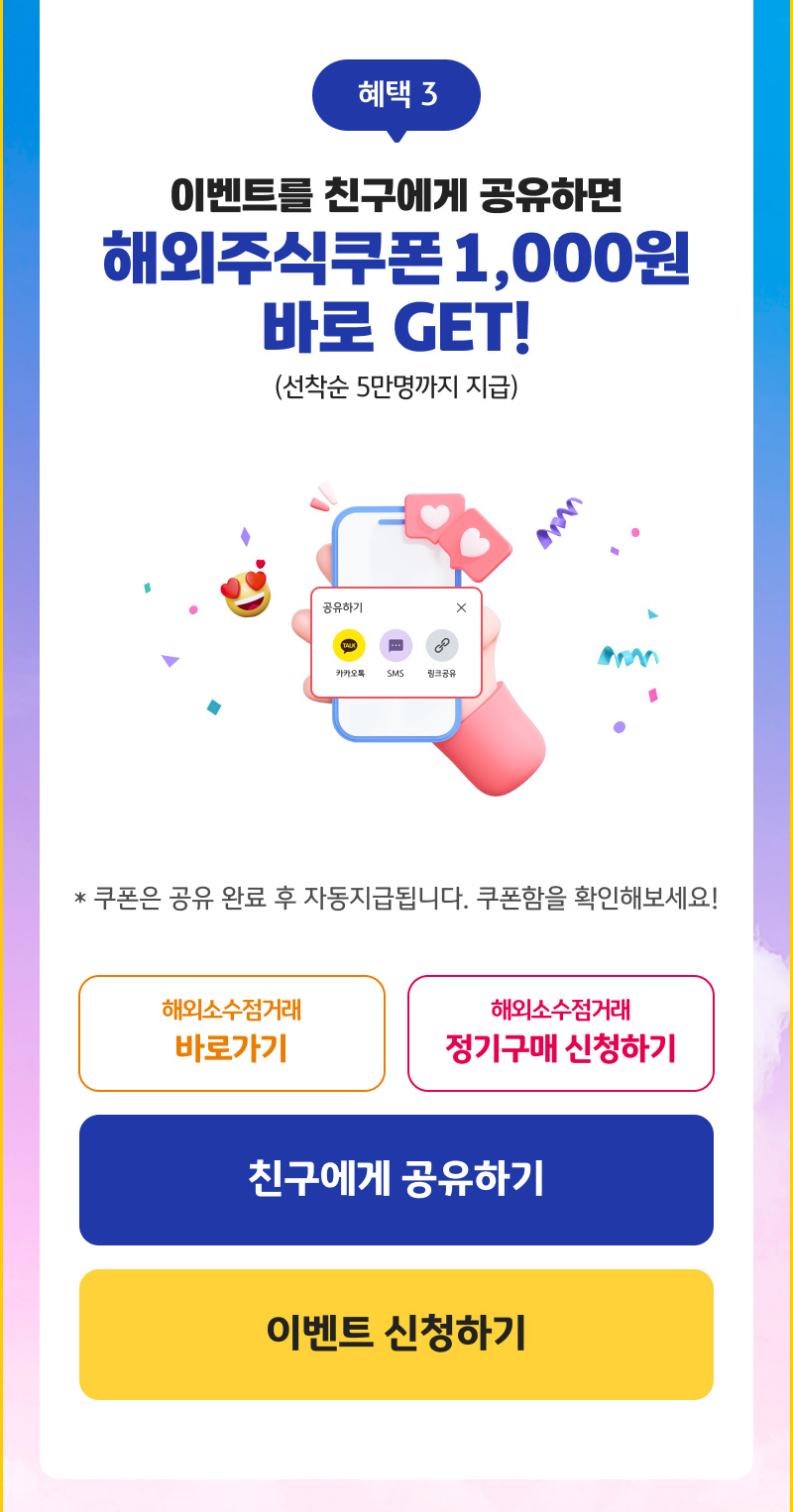 20만원 거래 시 추첨을 통한 해외 주식 쿠폰 증정 등