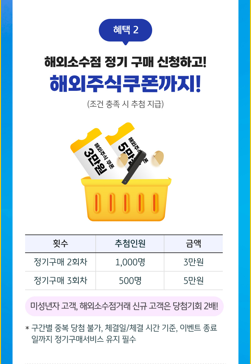 20만원 이상 기본 + 응모권 제공 해외 주식 쿠폰 또는 경품