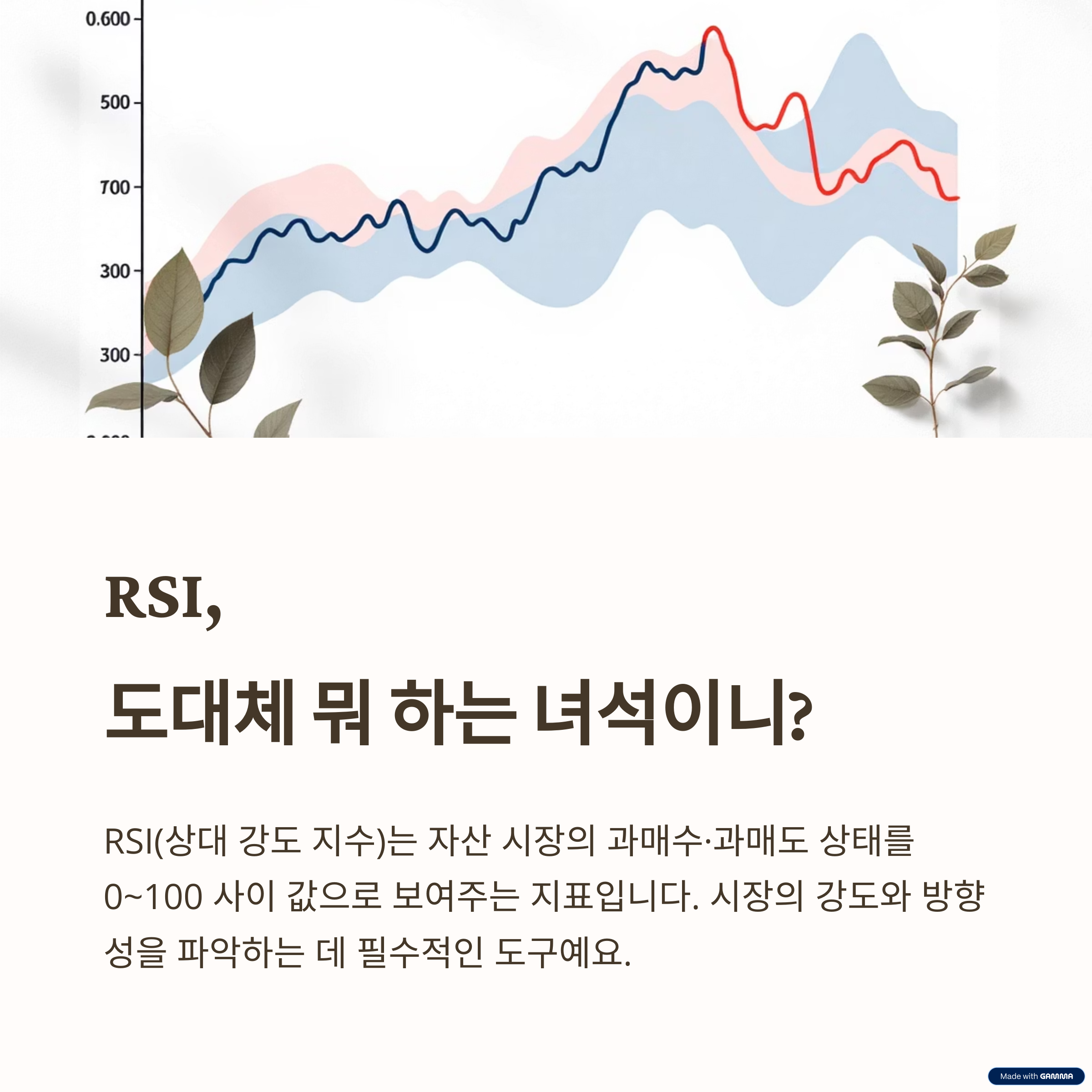 RSI(Relative Strength Index), 우리말로 '상대강도지수'라고 부르는 이 녀석은, 간단히 말해서 주식이나 코인 가격이 얼마나 세게 오르고 내리는지를 알려주는 지표예요.
