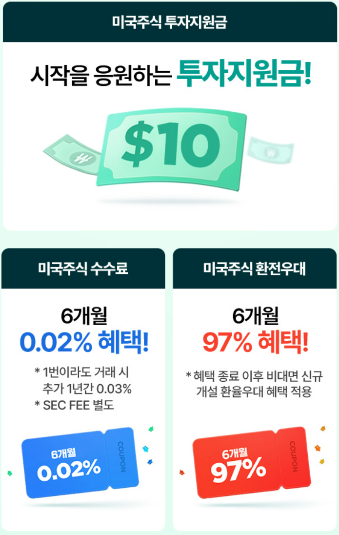 | 투자지원금 | MTS 이벤트 신청 시 $10 지급 |