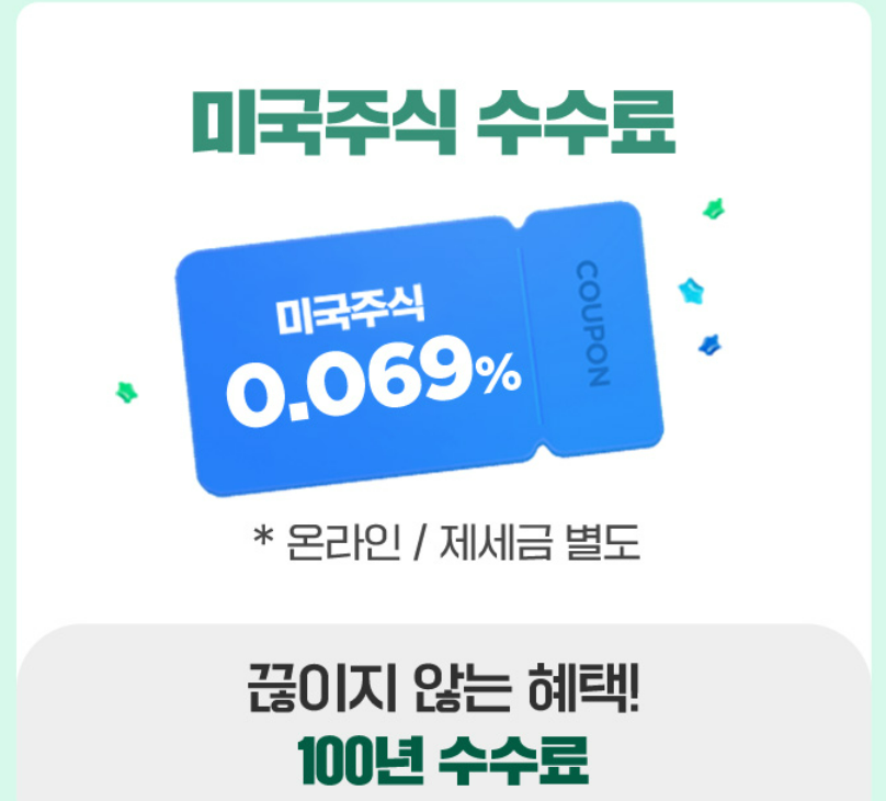 | 미국주식 거래 수수료 | 기본 0.069%, 특별 이벤트 신청 시 6개월간 0.02% |
